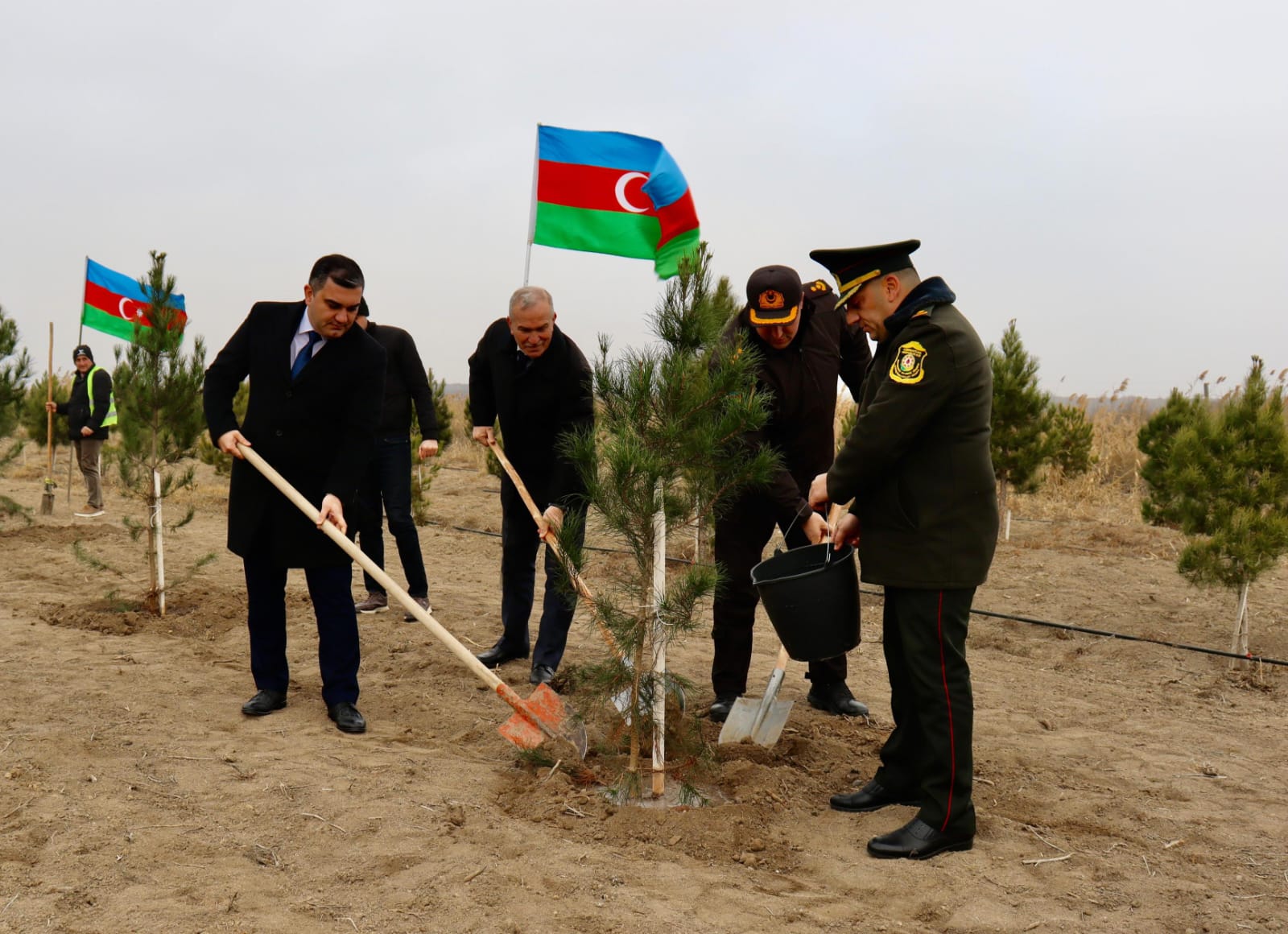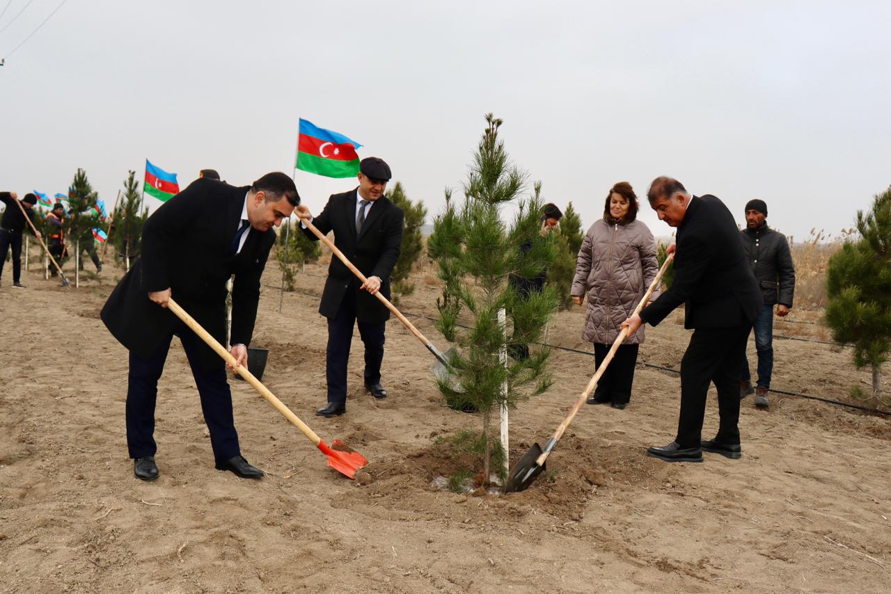 Aksiya çərçivəsində rayonun iqlim şəraitinə uyğun gələn 300 ədəd həmişəyaşıl ağaclar əkilib və yeni əkilmiş ağaclara da müasir damlama suvarma sistemi qurulub.